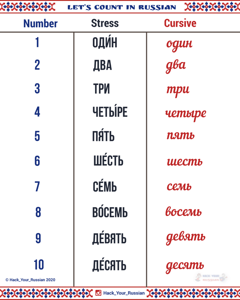 Let’s first learn how to count in Russian from 1 to 10 (In order to listen to how they are pronounced click here to watch)