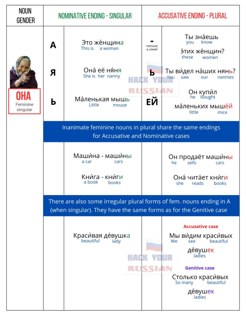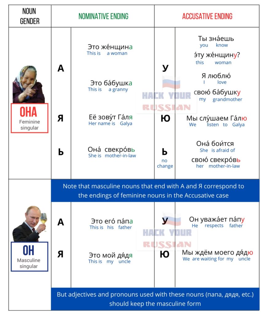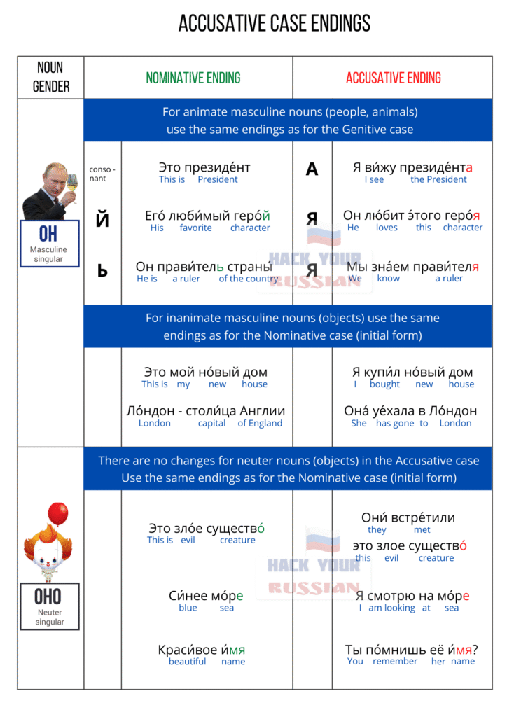 Let’s sum up the Accusative case endings for singular nouns and create a clear system out of it to make it more simple.