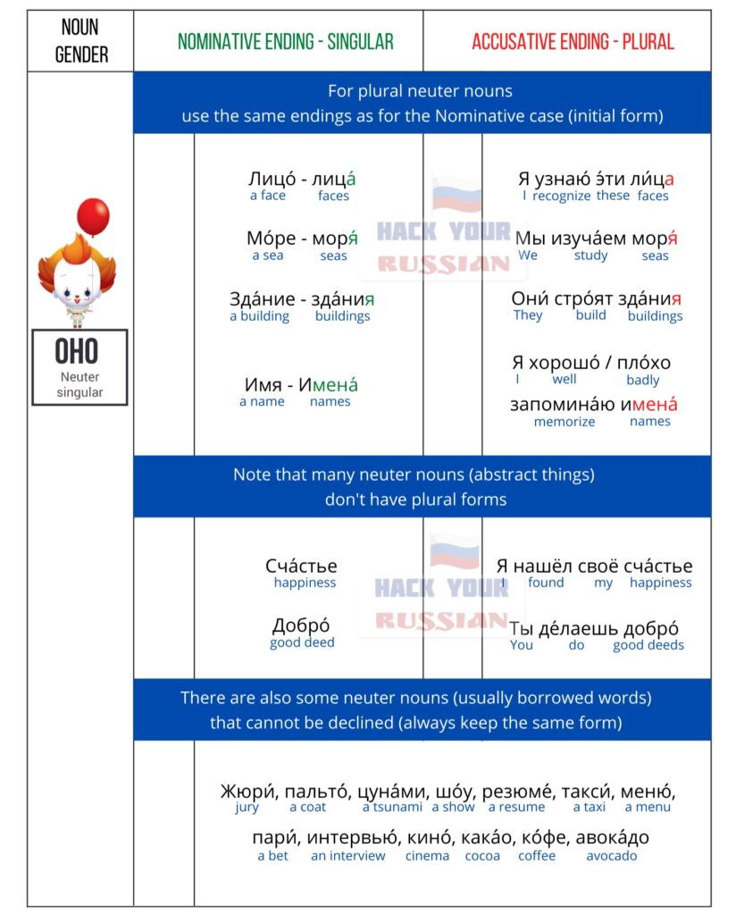 BUT! Words ‘труп’ (m.) – a corpse and ‘зо́мби’ (n.) – a zombie do not change their endings in the Accusative case as they are considered as inanimate nouns.
