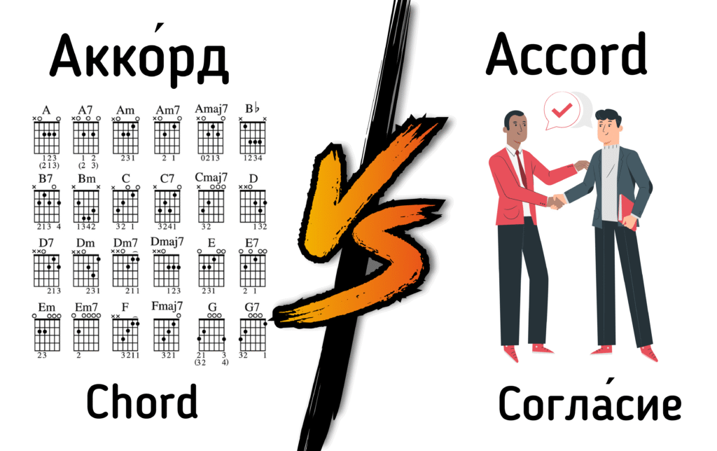 1. Акко́рд [akórd]– chord vs Accord – согла́сие [saglásiye].