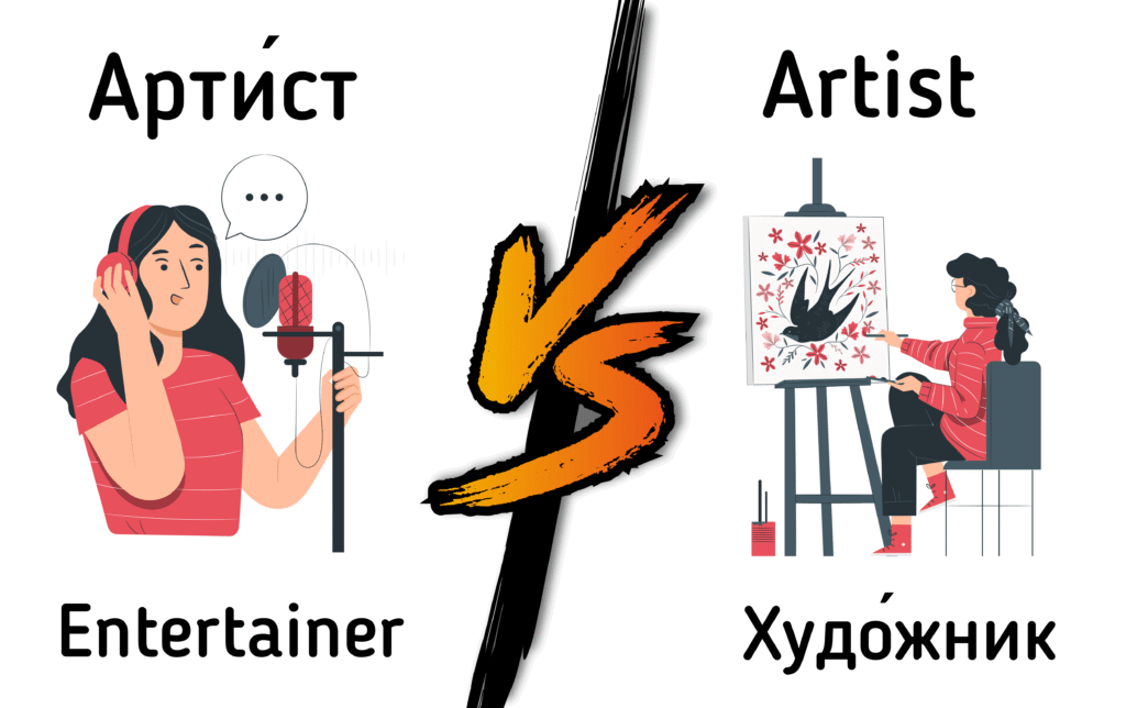2. Арти́ст [artist]– entertainer vs Artist– худо́жник [hudozhnik].