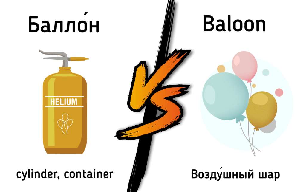 4. Балло́н [balon]– cylinder vs Baloon – возду́шный шар [vazdushnyi shar].
