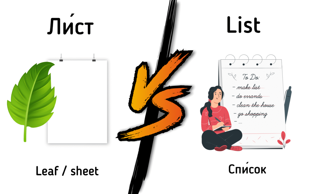 6. Лист [list] – leaf/sheet vs list – список [spisok].