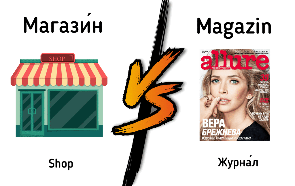 7. Магазин [magazin] – shop vs magazin – журнал [zhurnal].